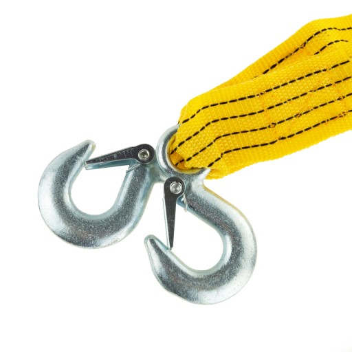 Bardzo mocne haki wykonane ze stali, wyposażone w zabezpieczenie przed wypięciem. Materiał liny posiada dodatkowe przeszycia wzmacniające.