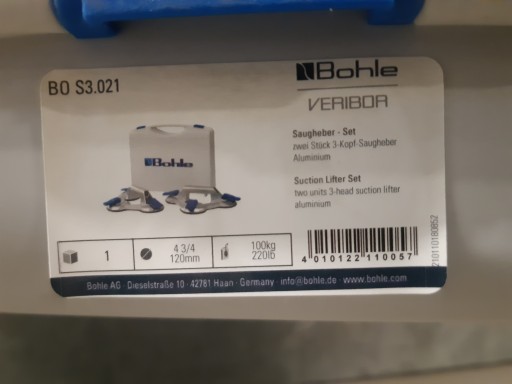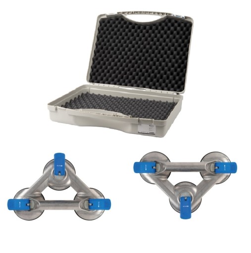 Przedmiotem oferty jest zestaw 2 sztuk przyssawek 3 główkowych od firmy BOHLE do szkła jak również innych powierzchni. W walizce do bezpiecznego przechowywania tych narzędzi.