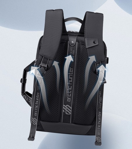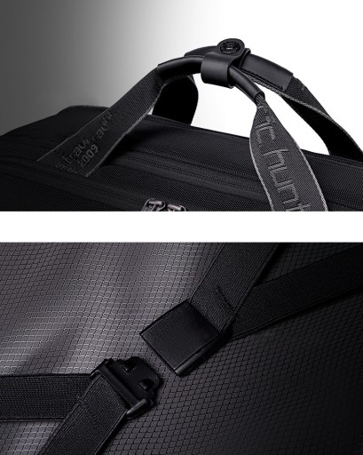 Dwukomorowy plecak/torba na laptopa marki Arctic Hunter o symbolu B00540 doskonale sprawdzi się zarówno w podróży jako bagaż podręczny, jak i na codzień w pracy. Ten model jest wykonany z Nylonu 1680D, zwanego nylonem balistycznym. To najmocniejszy i najtrwalszy nylon dostępny na rynku, dzięki czemu plecak cechuje wysoka odporność zarówno na urazy mechaniczne, jak i warunki atmosferyczne oraz promienie UV. Pierwsza komora, z przodu plecaka otwierana jest na płasko, jak walizka. Znajduje się tutaj miejsce na zapakowanie akcesoriów: umieszczono tutaj kilka kieszonek na akcesoria, organizer na długopisy, przypinkę do kluczy oraz wodoodporną kosmetyczkę zapinaną na zamek. W drugiej komorze z tyłu plecaka znajduje się dedykowana, miękka kieszeń na laptopa w rozmiarze do 15,6" oraz przestrzeń na zapakowanie ubrań, które można spiąć elastycznym paskiem. Plecak można powiększyć o 5cm, poprzez rozpięcie biegnącego po całym obwodzie zamka, dzięki czemu zyskujemy dodatkowe miejsce (7l) na zapakowanie rzeczy. Z przodu plecaka znajduje się duża kieszeń na podręczne rzeczy z zamkiem schowanym pod rantem materiału. Z prawej strony plecaka umieszczono elastyczną kieszeń na napój lub parasolkę. Szelki plecaka o ergonomicznym kształcie oraz tylna ściana plecaka wyłożone są oddychającymi gąbkami, dzięki czemu jest on wygodny przy dłuższym noszeniu. Na jednej z szelek umieszczono zaczep do okularów. Na tylnej ścianie umieszczono również szeroki pas, dzięki któremu można założyć plecak na rączkę torby lotniczej. Plecak posiada dwa uchwyty, dzięki czemu można go nosić w ręce jak torbę, a szelki po odpięciu można schować w specjalnej kieszeni z tyłu plecaka. Plecak posiada dwa dodatkowe pasy, za pomocą których można przymocować do niego np. kurtkę lub bluzę.