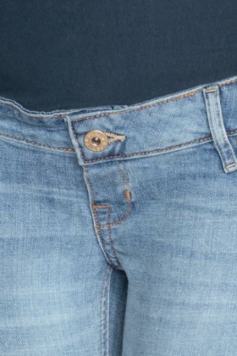 Dżinsy ze spranego, elastycznego denimu z detalami mocnego zużycia. Bardzo wąskie nogawki do kostki, atrapy kieszeni z przodu i prawdziwe kieszenie z tyłu. W talii szeroki, dzianinowy ściągacz zapewniający maksymalną wygodę.