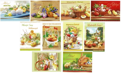 POCZTÓWKA KARTKA WIELKANOC A6 ZESTAW 9 SZT.