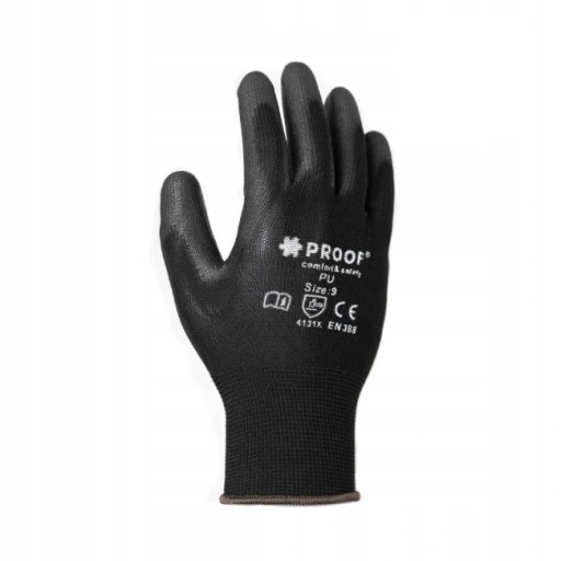 Rękawice, rękawiczki robocze, powlekane poliuretanem, czarne PROOF rozmiar 7-S - 10 par