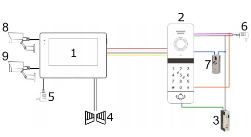 - Ilość przewodów: 4+2 (do elektrozaczepu)