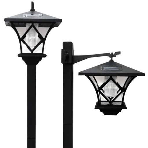 - Lampa ogrodowa zasilana energią słoneczną, idealna do oświetlenia ogrodów, ścieżek lub schodów.