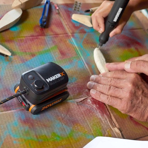 - Narzędzie obrotowe MakerX jest niewielkie, ale pełne mocy. Dzięki niemu możesz grawerować, szlifować, piaskować, ciąć, polerować i czyścić.