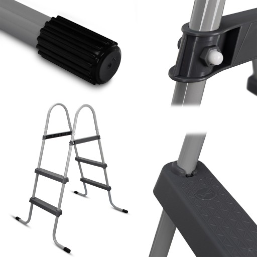 Dwustronna drabinka do basenów ogrodowych. Stabilna i mocna, pasuje do każdego basenu, którego wysokość ścianki nie przekracza 84 cm.