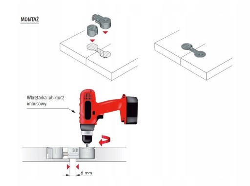 Złącze do poziomego łączenia dwóch blatów/płyt o grubości minimum 25 mm.