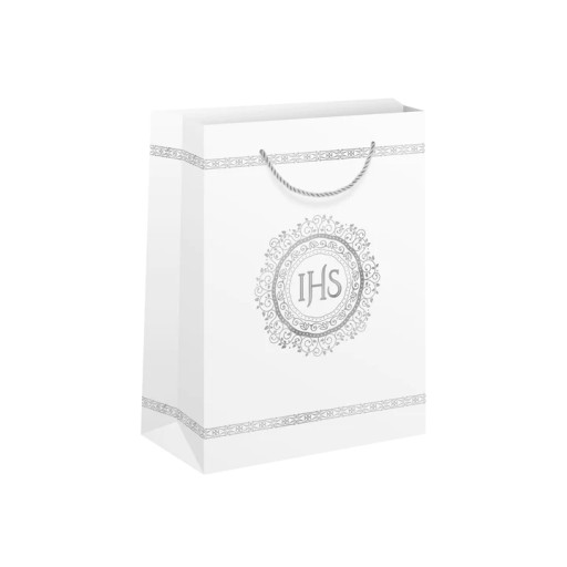 Подарочный пакет для причастия IHS бело-серебряный