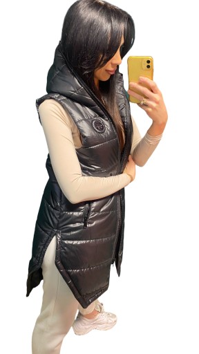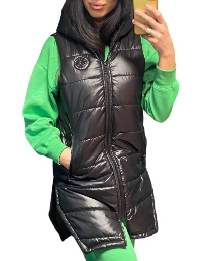 DŁUGA PIKOWANA KAMIZELKA ROZMIAR -L- KOLOR CZARNY