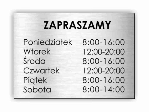 tabliczka GODZINY OTWARCIA PRACY Nazwa Firmy LOGO zapraszamy A5