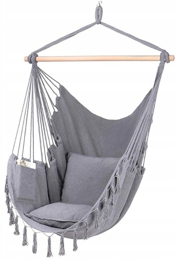 - W skład zestawu wchodzi fotel, belka drewniana oraz 2 poduszki