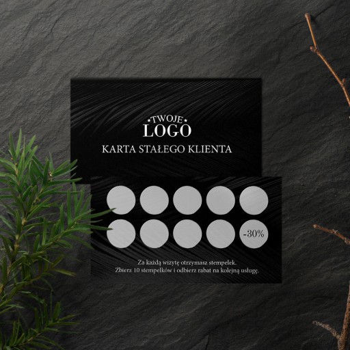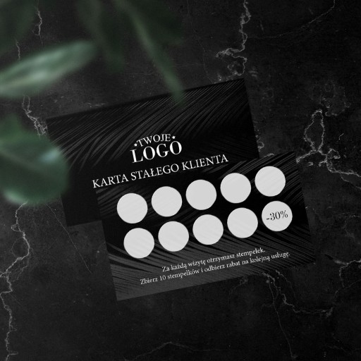 Karta stałego klienta z Twoim logo to prosty sposób aby zadbać o klientów, którzy już skorzystali z Twoich usług. Doceń ich za to, że wybrali właśnie Twoją firmę. Klienci mogą zbierać naklejki czy stempelki, które następnie wymienią na rabaty w Twoim punkcie.