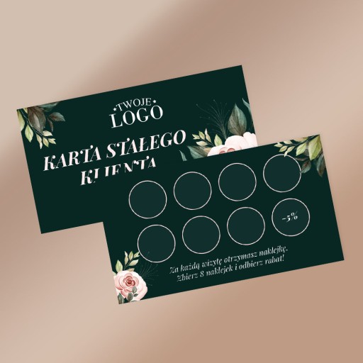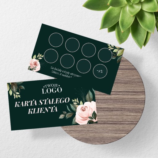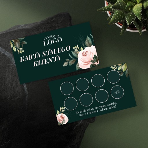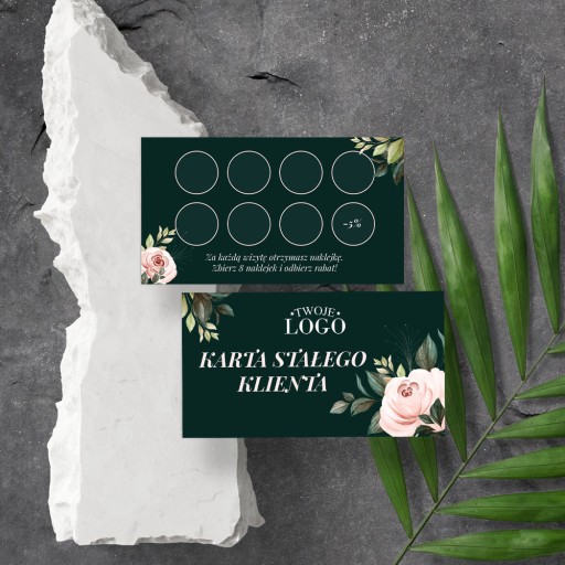 Karty Stałego Klienta butelkowa zieleń | eleganckie z kwiatami 100