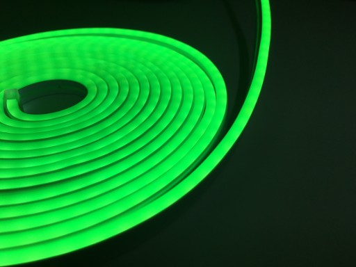 Neon LED FLEX Jest to Taśma LED zamknięta w specjalnym wężu z tworzywa sztucznego którego jedna część bardzo dobrze przewodzi światło, dzięki czemu krawędź neonu bardzo ładnie i mocno świeci jednolitym kolorem, a druga część izoluje i nie daje światła z boku i dołu neonu. Neon jest świetnym rozwiązaniem do zrobienia mocno świecącego napisu, czy kształtu lub zaznaczenie krawędzi.