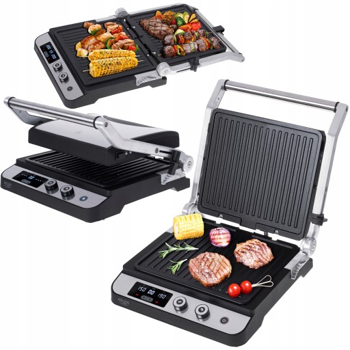 Pełne smaku burgery, steki, sery czy warzywa i owoce z grilla są w zasięgu ręki dzięki temu kompaktowemu urządzeniu. Grill z wyświetlaczem LED o mocy 3000 W to rozwiązanie dla osób, które nie mają miejsca na duże i rozkładane sprzęty. Bez problemu możesz używać go w mieszkaniu. Panel sterujący z ekranem pozwala na bieżąco kontrolować ustawienia podczas obróbki produktów.