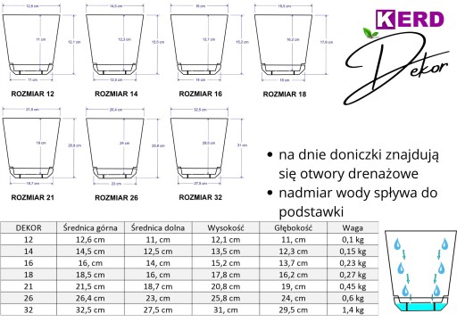 na POZOSTAŁYCH AUKCJACH Doniczki z serii Dekor dostępne są w 7 rozmiarach (średnica mierzona na górze doniczki):