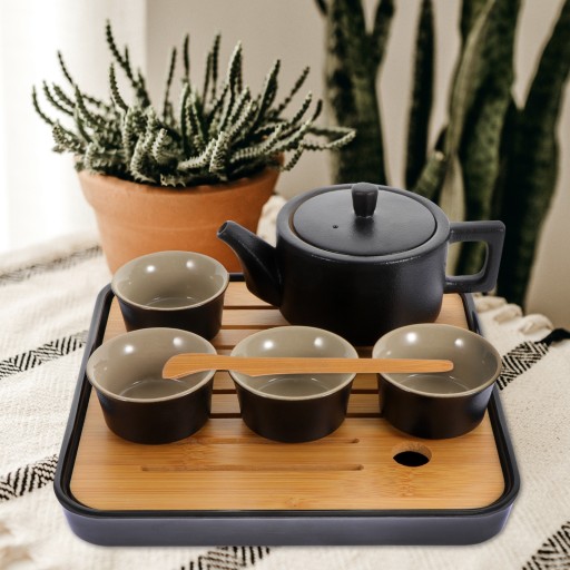 Ten ceramiczny zestaw do herbaty służy do powolnego degustowania herbaty podczas relaksu lub rozmowy z innymi.
