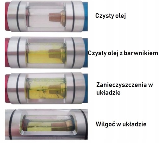 Urządzenie pozwala na zbadanie stanu oleju w układzie dzięki czemu możemy sprawdzić czy układ jest zatarty , czysty , zabarwiony itp. i ponowne wpuszczenie go do układu.