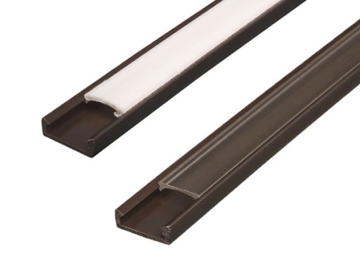 Profil LED NAWIERZCHNIOWY BRĄZ - 16 x 7 mm o długości 1 metra + klosz typu KLIK (mleczny lub transparentny) - ELASTYCZNY