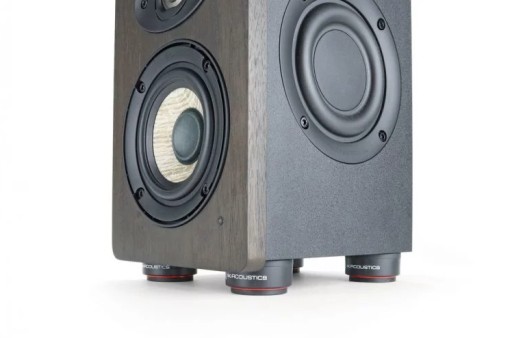 Warto wspomnieć, że izolatory Iso-Puck Mini są sprzedawane w zestawie po 8 sztuk. Jedną sztukę izolatora przewidziano na obciążenie do 2,75 kg. W zależności od wagi głośnika, korzysta się z 3 lub więcej izolatorów.