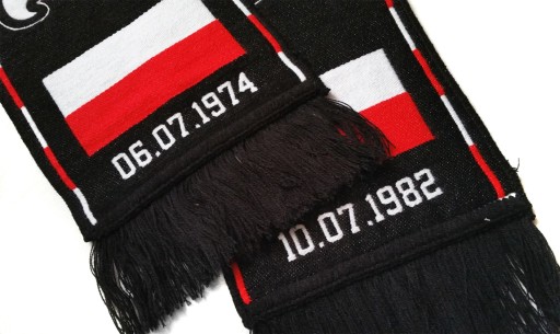 Tło wzoru stanowią czarno-grafitowe pasy, urozmaicone od góry delikatnymi wstawkami biało-czerwonymi. Krańce szalika zdobi flaga państwowa wraz z dwiema datami: 6 lipca 1974 r. i 10 lipca 1982 r., kiedy to na mistrzostwach świata Polacy pokonywali w meczu o trzecie miejsce odpowiednio 1:0 Brazylię i 3:2 Francję.
