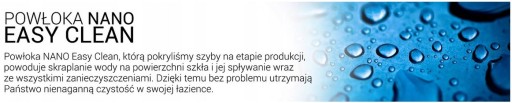 Drzwi oraz ścianka zostały wykonane z wysokogatunkowego szkła hartowanego o grubości 6 mm. Posiadają powłokę ochronną Easy Clean, która ułatwia utrzymanie kabiny w czystości. Dzięki specjalnej fazie produkcji są trwałe i łatwe w utrzymaniu czystości.