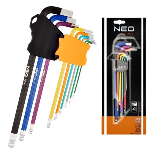 NEO KLUCZE IMBUSOWE DŁUGIE Z KULKĄ KOLOROWE IMBUS 09-512