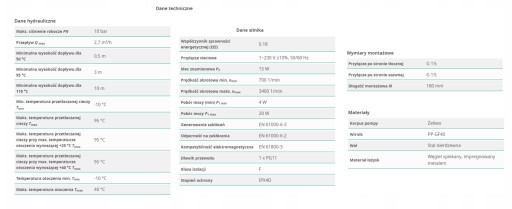 Pompa do wszystkich wodnych systemów grzewczych i klimatyzacyjnych oraz instalacji glikolowych o stężeniu roztworu do 50%.