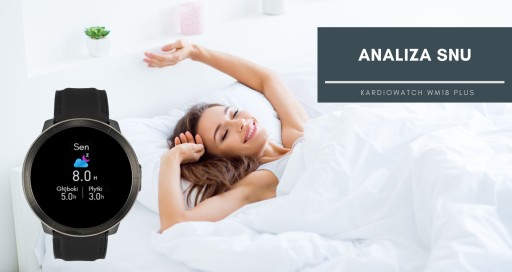 Nasz smartwatch analizuje Twój sen aby pomóc Ci w zadbaniu o zdrowy i regularny odpoczynek. Sen dorosłego człowieka powinien trwać około 7-8h. Na ilość snu wpływają głównie wiek oraz czynniki genetyczne. Sen możemy podzielić na dwie fazy: NREM(w tej fazie występują powolne ruchy gałek ocznych) oraz REM( ta faza charakteryzuje się szybkimi ruchami gałek ocznych. Zdarza się również, że w trakcie nocy dochodzi do przebudzeń, o których rano nie pamiętamy.