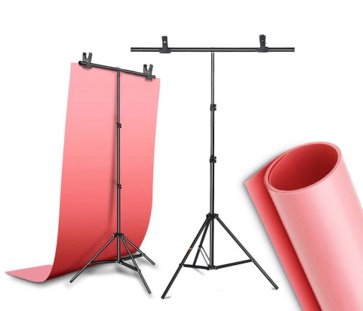 Mobilny zestaw do fotografii produktowej i reklamowej, który jest gotowy do pracy w kilka minut. Zestaw do tła TYP T 80x200cm. System zawieszania na 1 tło, to wygodne mocowanie na maksymalnej wysokości 200cm. Tło mocowane jest do systemu za pomocą dołączonych klipsów z tworzywa sztucznego.