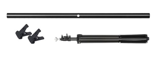 Zestaw skonstruowany jest w sposób zapewniający stabilność i trwałość użytkowania. Za pomocą żabek znajdujących się w zestawie,można zamocować na nim tło bez tulei o maksymalnej szerokości 80cm.