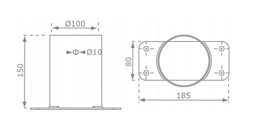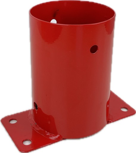 Łącznik ścienny okrągły stanowi rozwiązanie do mocowania belek okrągłych wahadłowych do ścian pionowych. Element metalowy ma około 2,5 mm grubości i ma cztery otwory do mocowania o średnicy 10 mm. Wykonany z rury stalowej malowanej proszkowo. Średnica belki 10cm
