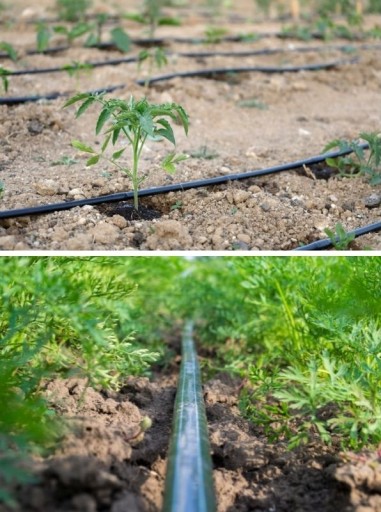 ➡️ Taśma kroplująca doskonale sprawdza się do nawadniania roślin uprawianych w rzędach w szklarniach oraz na polach.