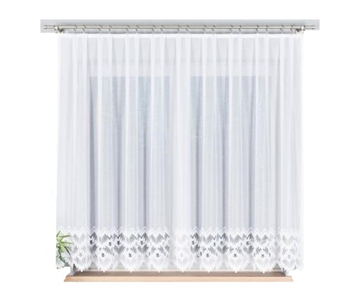 Firanka zdelikatnym i eleganckim wzorem pasuje do salonu, sypialni, kuchni i innych pomieszczeń w każdym domu. Idealnie pasuje do nowoczesnych oraz klasycznych wnętrz. Biały kolor dzięki swojej uniwersalności doskonale sprawdzi się w wielu miejscach, niezależnie od ich wystroju i pięknie rozświetli pomieszczenia. Dzięki delikatnej strukturze nie blokuje światła słonecznego. Firana jest gotowa do założenia nie wymaga dodatkowego przystosowywania.