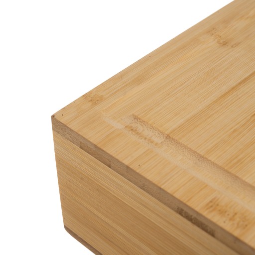 Praktyczna drewniana deska do krojenia z wysuwanym pojemnikiem. Wykonana z naturalnych włókien bambusowych. Produkt bardzo trwały, odporny na ścieranie i uszkodzenia mechaniczne. Deska idealnie sprawdzi się przy krojeniu produktów spożywczych lub serwowaniu wędlin, serów, przy czym będzie je elegancko prezentować.