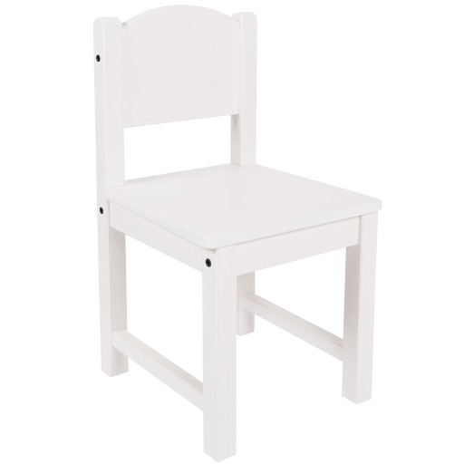Białe krzesełko dziecięce, wykonane z litej sosny, bardzo wygodne do siedzenia i zabawy dla twojego malucha.