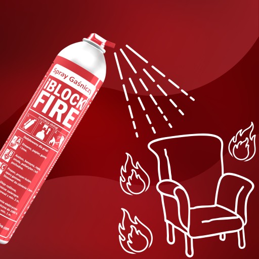 iBlockFIRE to pierwszy na świecie, w 100% biodegradowalny spray gaśniczy, który dzięki swoim unikatowym właściwościom i niewielkim rozmiarom może być wykorzystywany jako podręczna gaśnica dla każdego. Skuteczność pożarowa 5-ciu kategorii w połączeniu z innowacyjną formułą iBlockCARE, która jest przyjazna dla ludzkiej skóry, tworzą produkt o szerokim zastosowaniu. Nasz spray gaśniczy można wielokrotnie użyć (aż do opróżnienia butelki), a jego prosta obsługa sprawia, że nawet w najbardziej stresującej sytuacji nie będzie problemu z jego użyciem.