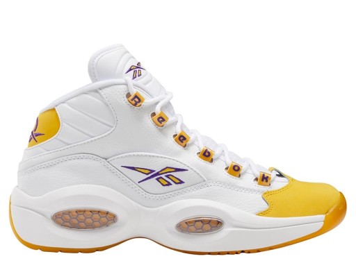 Buty Reebok Question Mid "Yellow Toe" zostały stworzone dla Allena Iversona, który w 2001 roku zdobył nawet nagrodę dla najbardziej wartościowego gracza NBA. Cholewkę wykonano ze zmiękczanej skóry, która ma kontrastujący kolor na pięcie i toeboksie. W podeszwie umieszczono flagowy system amortyzacji Reeboka, który nieodparcie przypomina plastry miodu. Dla dodania charakteru boczne logo zostało wuhaftowane. Gumowa podeszwa zewnętrzna zapewnia lepszą wytrzymałość i optymalna przyczepność.