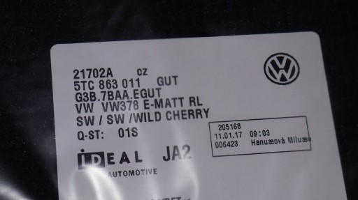 VW TOURAN 5T DYWANIKI CZEROWNA NIĆ 5TC863011GUT GUT NOWE