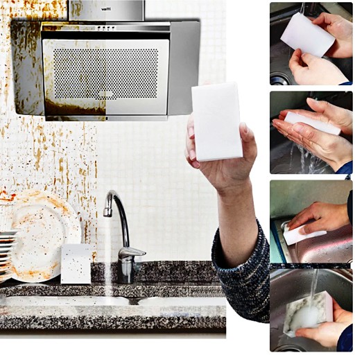 Magiczna gąbka działa jak gumka na brud. Nie potrzebujesz chemii do skutecznego usuwania zabrudzeń. Gąbka nadaje się do powierzchni, które są odporne na działanie wilgoci i ścieranie, gdyż do skutecznego działania magicznej gąbki należy lekko ją zwilżyć, a brud ścierać jak ołówek gumką.