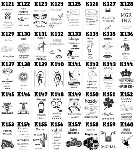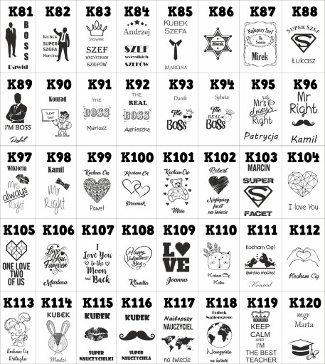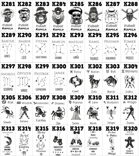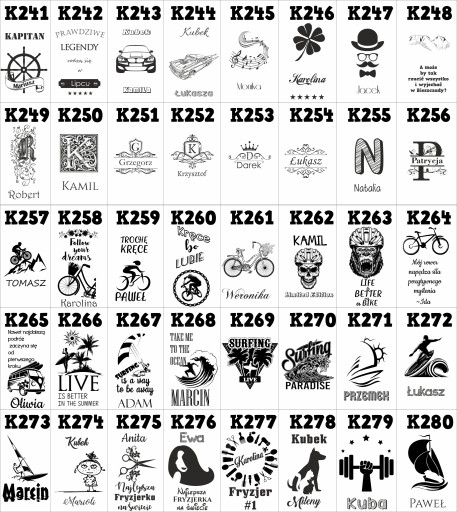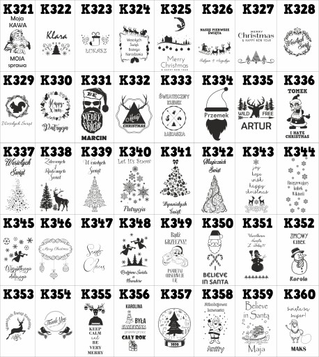 - w wiadomości do sprzedającego napisz numer wzoru np K3 imię Janusz lub data czy własny tekst w zależności do wybranego wzoru