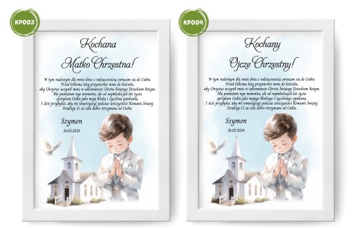 ➡️ PODZIĘKOWANIE DLA Chrzestnych - PLAKAT A4 + Ramka