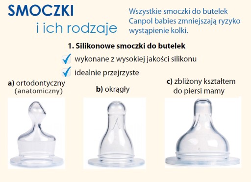 - Silikonowy anatomiczny smoczek o przepływie mini pasuje do butelek wąskich.