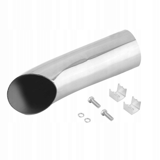 - Końcówka wydechu przeznaczona jest to montażu jako dodatkowy element auta nadając mu rasowy wygląd i charakter. Końcówka posiada zaciski mocujące umożliwiające montaż bez potrzeby spawania.
