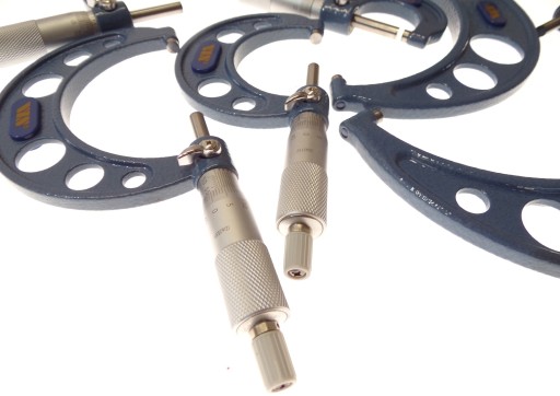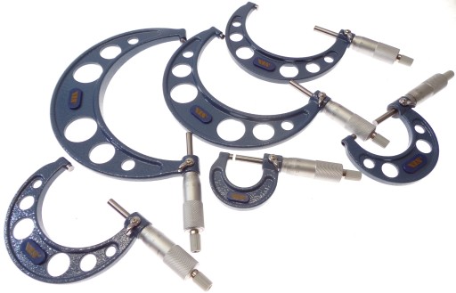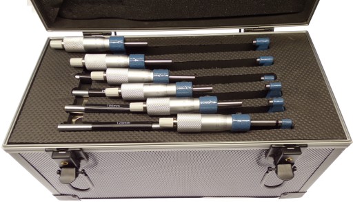 Zestaw sześciu mikrometrów firmy VIS mierzących z dokładnością do 0,001mm