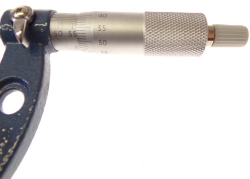 - Odczytujemy wymiar tak jak przy mierzeniu z dokładnością 0,01 i dodatkowo odczytujemy wymiar ze skali umieszczonej na obwodzie na zasadzie odczytu suwmiarki czyli sprawdzamy która kreska skali bębna pokrywa się ze skalą umieszczoną na obwodzie.