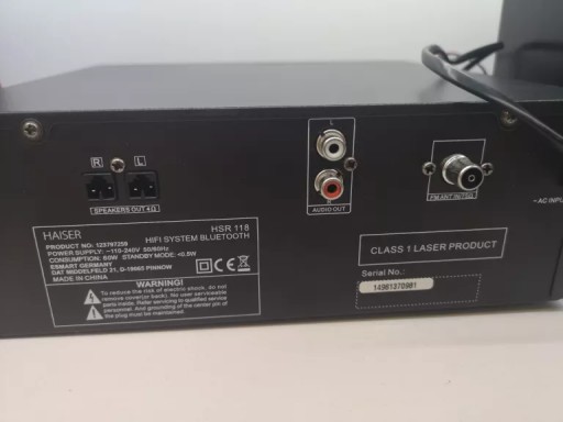 Model: HSR 118.Moc trzymania: maksymalnie 60 W.Okres trwałości: <0,5 W.Wersja Bluetooth: 2.1Połączenia: Port USB z przodu, gniazdo słuchawek stereo (3,5 mm) , AUx / line-in (wtyczka jack 3,5 mm).Wstrzymaj wyjście audio (dźwięk analogowy): Wyjście poziomu elektrycznego: 1,0 - 2,0 V, rezystancja: 10 ks.Zakres częstotliwości: 20 Hz - 20 kHz ( 3 dB).Zachowaj odległość hałasu (SNR): 80 dB.Moc: 2 x 20 W (RMS).Okres trwałości: 14 dB ~ + 14 dB.Wysokość: 14 dB ~ + 14 dB.