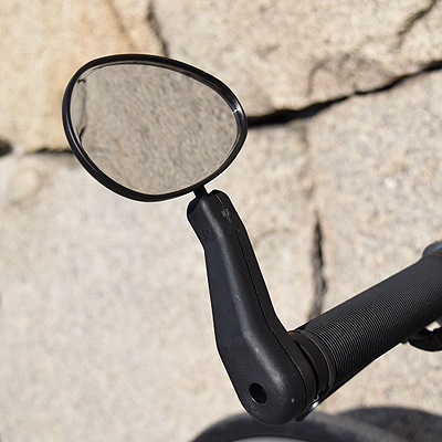 - Lekkie lusterko rowerowe wsteczne, mocowane do końca kierownicy.