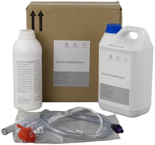 Dodatek Eolys Powerflex nie może być w żadnym wypadku mieszany z Eolys DPX42, Eolys 176 lub Infineum F7995. Przeznaczony specjalnie dla samochodów z silnikami wysokoprężnymi wyposażonymi w filtr cząstek stałych (FAP) począwszy od OPR 12152 lub 12166 (w instrukcji B1KT0102P0 znajduje się dokładna lista samochodów). Kolor oznaczenia złączki zatrzaskowej na samochodzie i korków Zestawu gt; niebieski. Użycie jednorazowe: Wyrzucić zastaw po wykorzystaniu, aby uniknąć jakiegokolwiek zanieczyszczenia systemu domieszkowania. Umożliwia całkowite spalanie cząstek sadzy wyrzucanych przez silnik. Zestaw 3 litrowy pozwala wykonywać uzupełnienia w czasie interwencji. Te płyny zapewniają utrzymanie funkcji bezpieczeństwa samochodu. Każda generacja dodatków jest komponowana specjalnie dla konkretnego typu silnika.