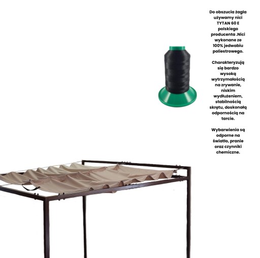 Produkt przeznaczony do montażu na zewnątrz, najczęściej stosowany jako zadaszenie w celu ochrony przed słońcem i deszczem (przy wietrze przekraczającym 50km/h oraz dużych opadach deszczu zalecamy złożenie żagla).